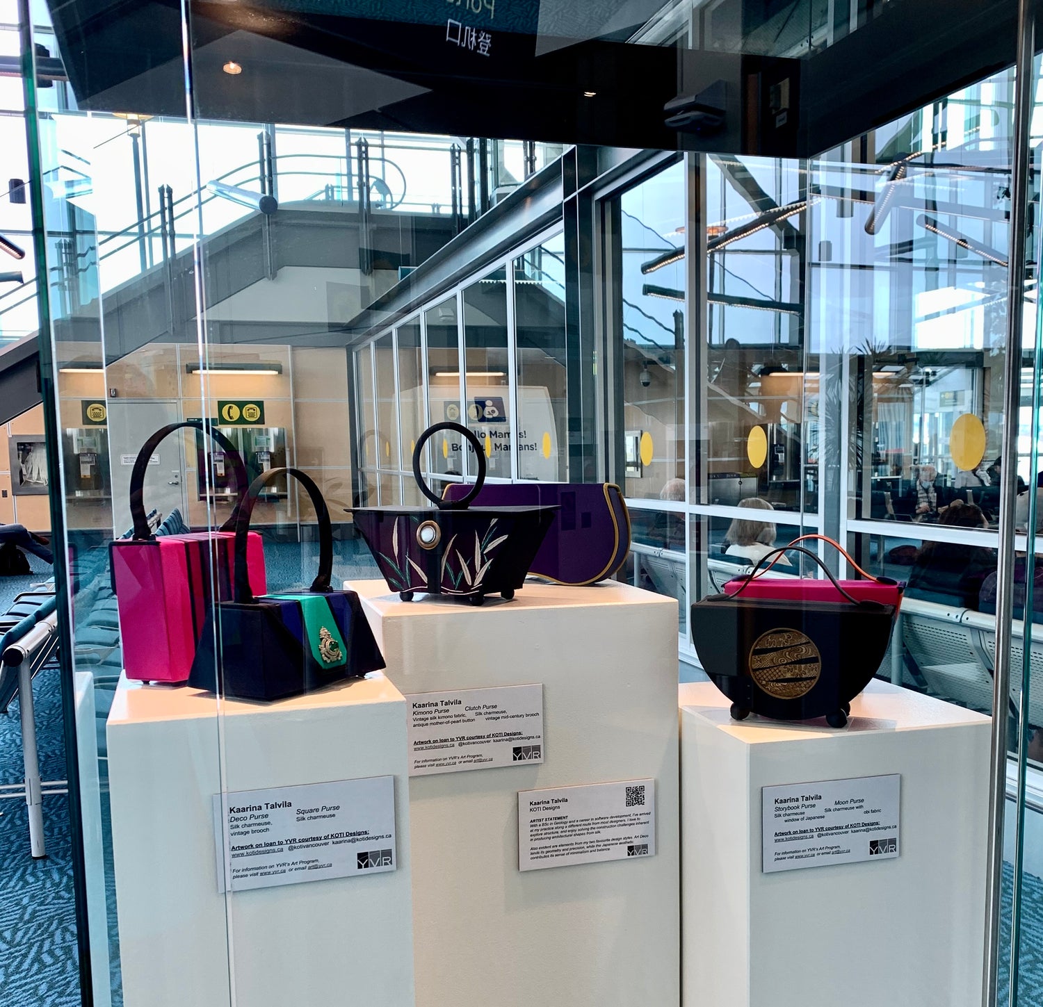 I'm thrilled to have been invited to display my work at the Vancouver International Airport. Pictured here are six of my purses in the US departure lounge. The work will remain at YVR for a year and be circulated around all four terminals.
