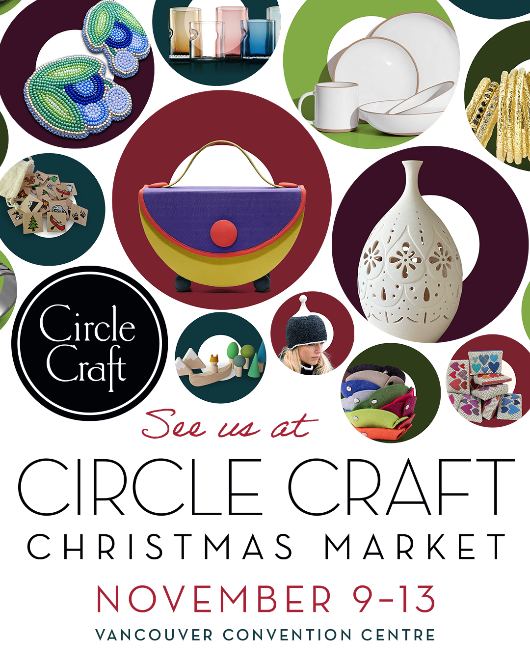 I will be doing a pop-up shop in the Circle Craft Store on Granville Island on the weekend of December 11-12th. Please come by and make it part of a day on Granville Island. You can get some Christmas shopping done, take a break in one of the Island’s many restaurants and stay to see the Christmas lights.